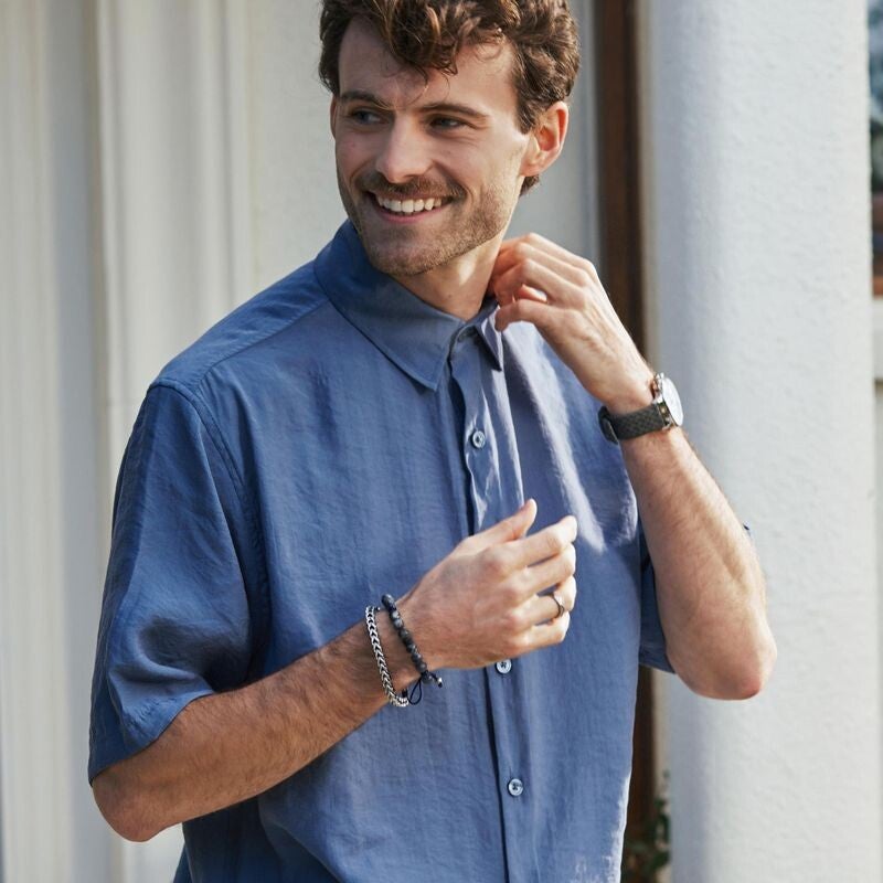 Herren-Armband, Edelstahl, schwarzer Labradorit, Lapis