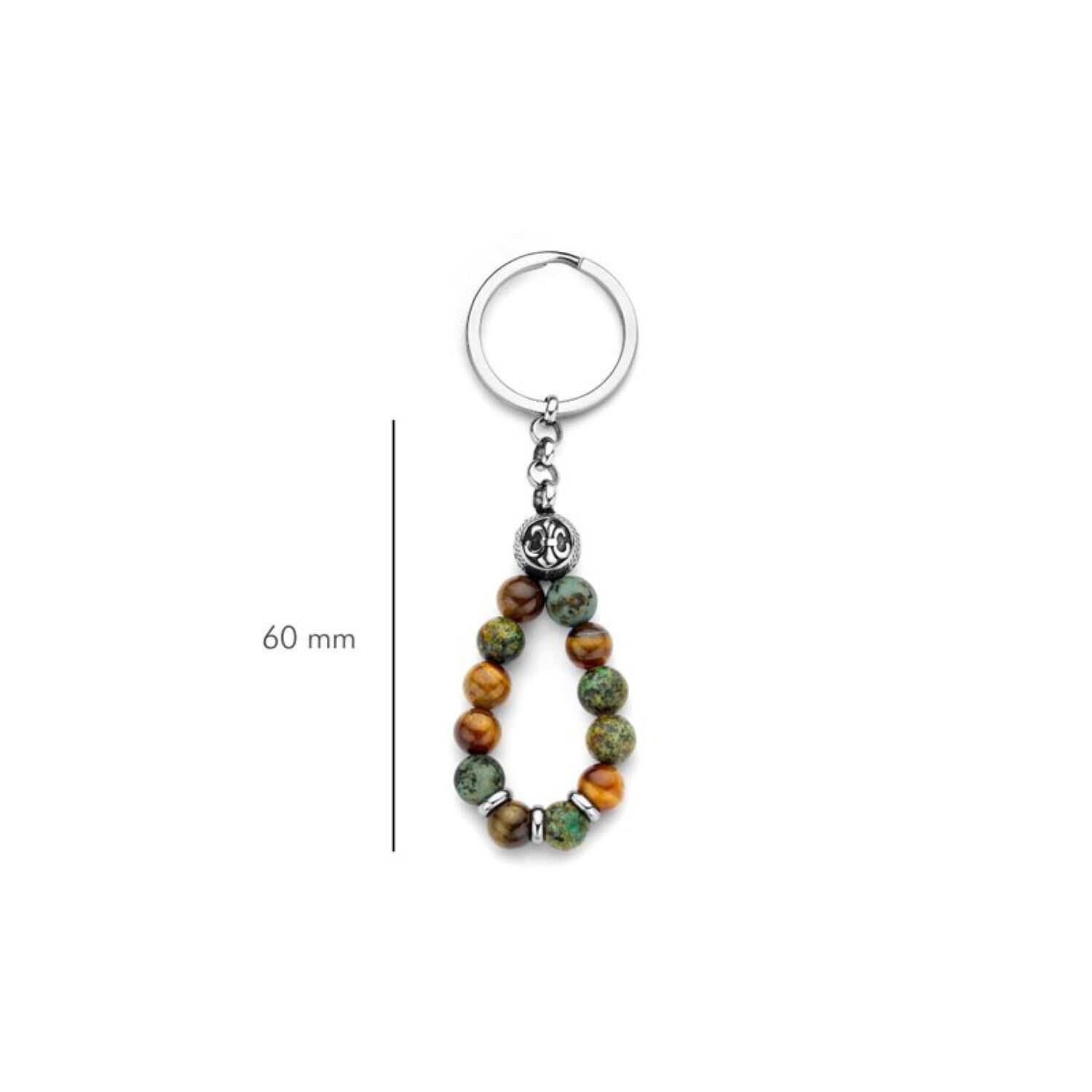 Schlüsselanhänger, Edelstahl 316L, 90% recycelt, Tigerauge & afrikanischer Türkis