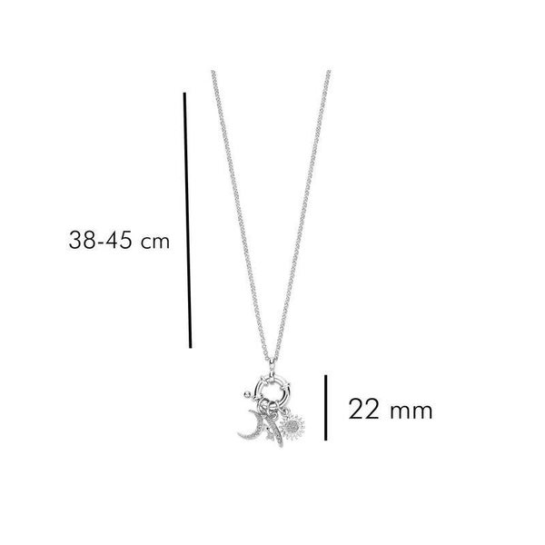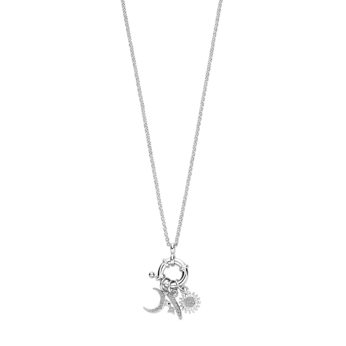 Kette, rhodiniertes Silber, Anhänger Mond, Sonne