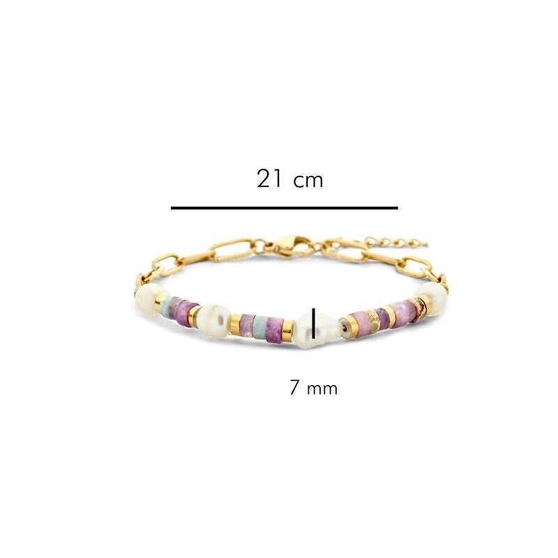 Armband, Edelstahl 316L, 100 % recycelt, PVD-Vergoldung, Süßwasserperle & Amethyst & Jaspis