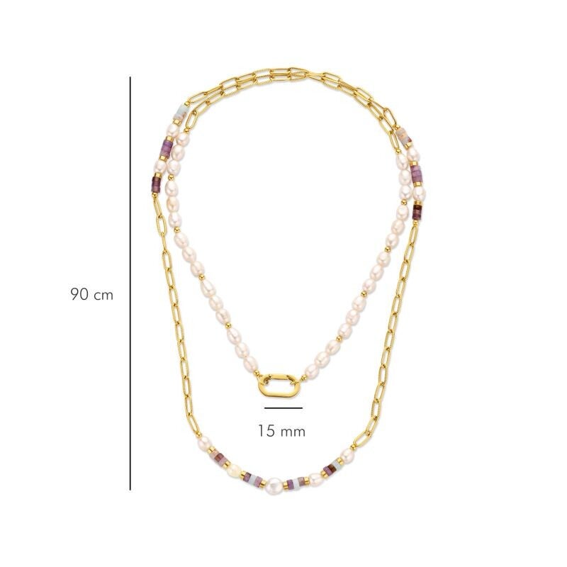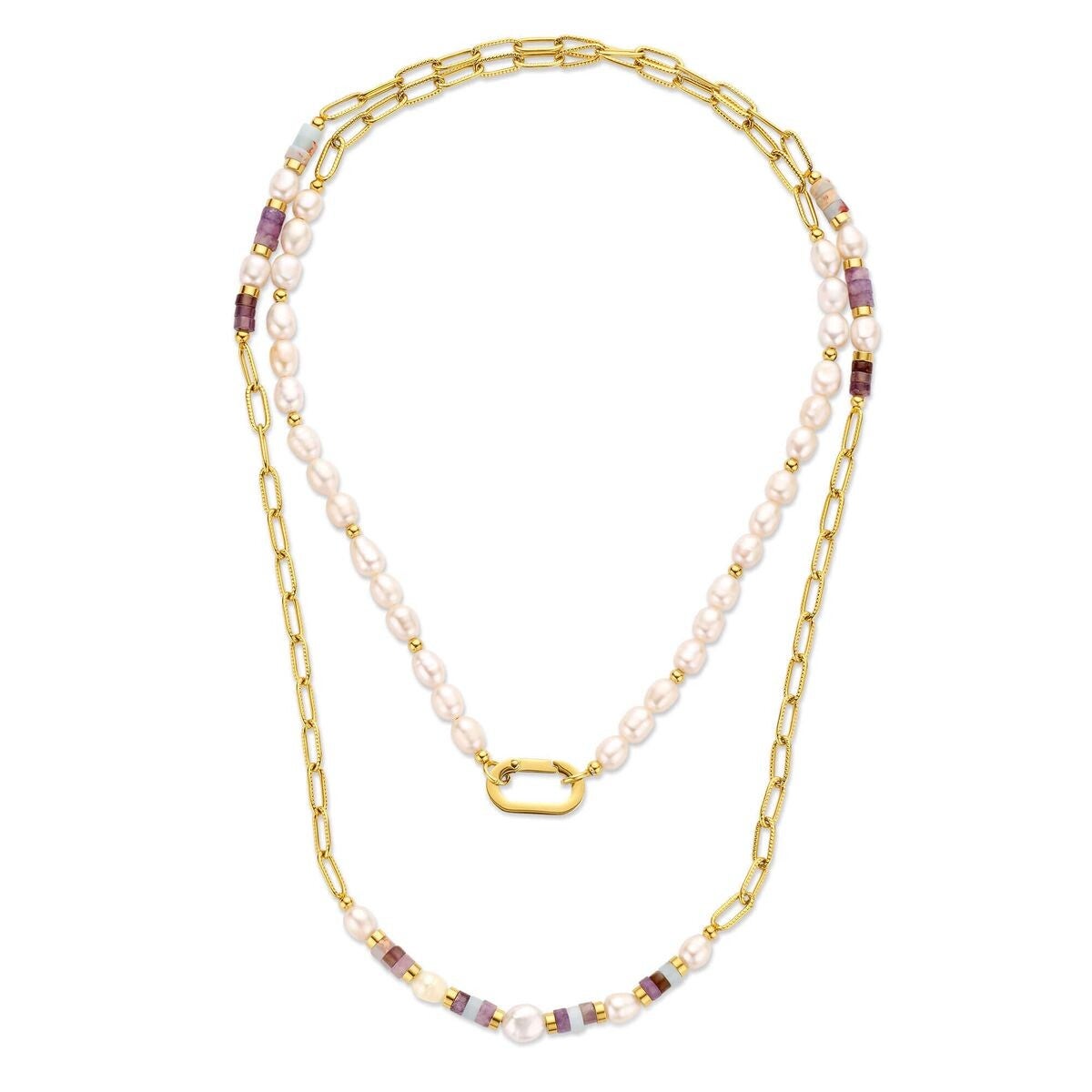 Halskette, Edelstahl 316L, 90% recycelt, Ionenplattierung Gold, Süßwasserperle & Amethyst & Jaspis