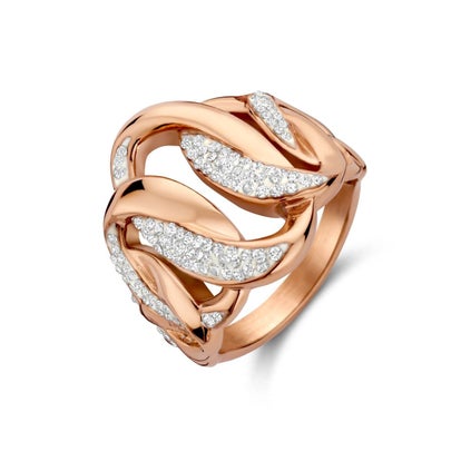 Ring, Edelstahl 316L, 100% recycelt, roségold, geflochten Kristall